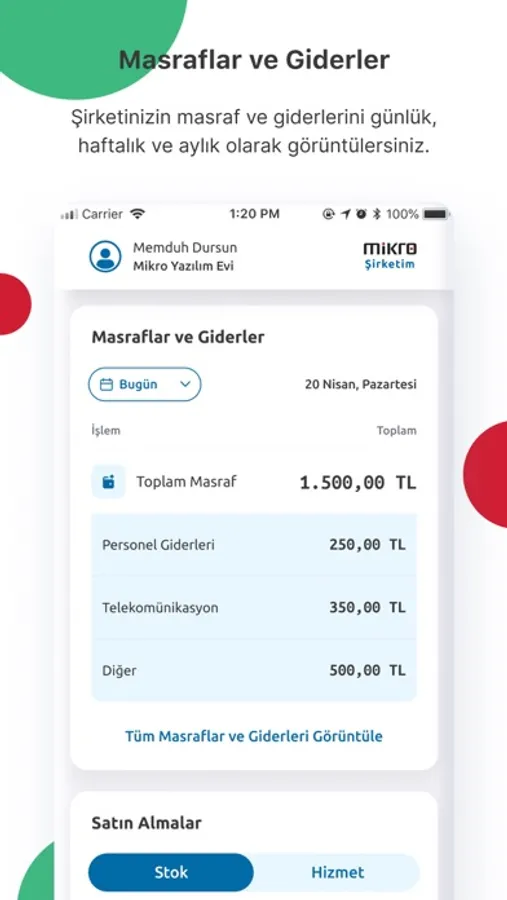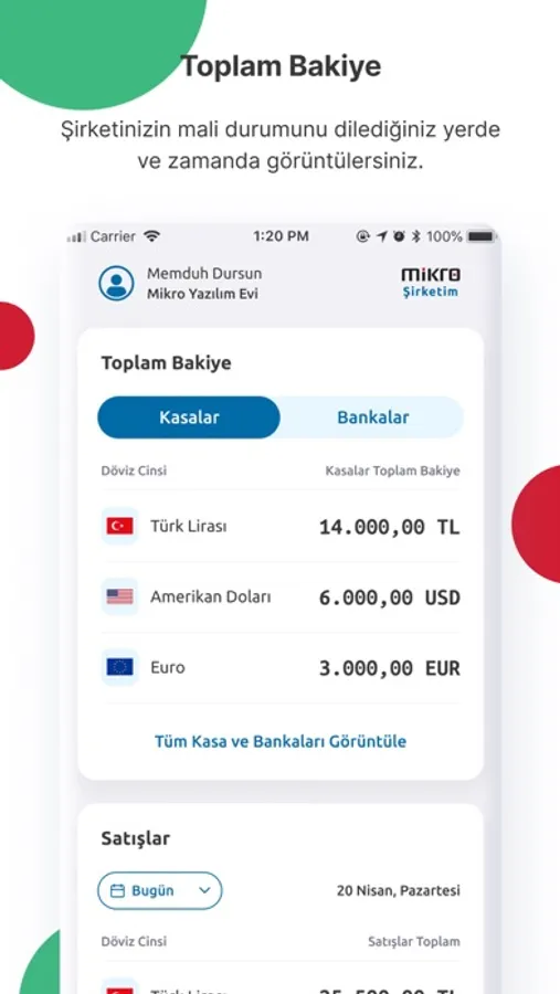 Dilerseniz, satış bilgilerinizi günlük, haftalık, aylık şekilde inceleyebilir hatta masraflarınıza günlük, haftalık, aylık şekilde ulaşabilirsiniz. Mikro Şirketim uygulamasını hemen indirirseniz işletmenize ait kasa stok ve hizmet satın almalarını günlük, haftalık, aylık şekilde görüntüleyebilir kasa banka durumunuzu farklı döviz cinslerini detaylı olarak keşfedebilirsiniz.