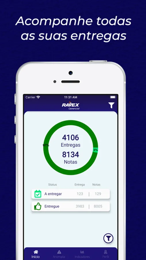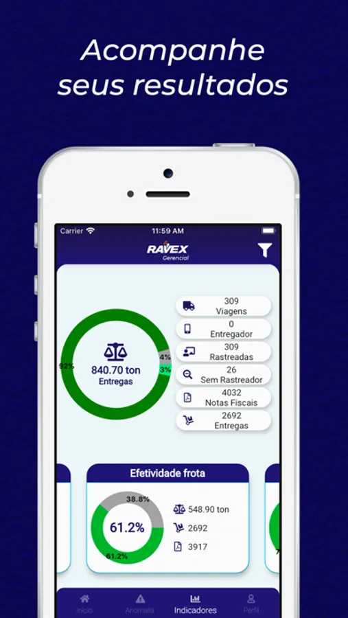 Aplicativo para clientes do sistema Ravex Gestão de Logística. É um aplicativo direcionado aos diretores, gerentes e gestores, auxiliando no acompanhamento de seus resultados. Nele é possível visualizar o desempenho de suas unidades e transportadoras, acompanhar as viagens e visualizar as anomalias ocorridas.