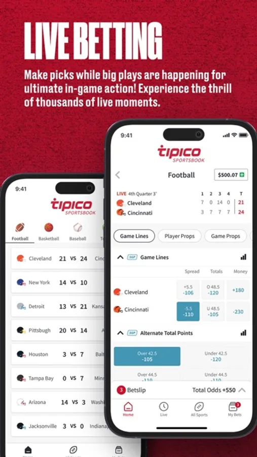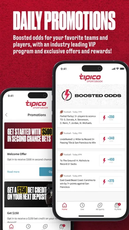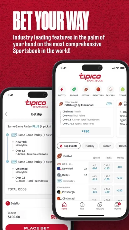 Bet on sports and win by choosing from live and in-game bets, money lines, spreads, multi-sport parlays, futures, round robin bets, parlays, prop bets, sports odds boosts and more. Get access to Tipico welcome bonus, risk-free bets, cash rewards, daily odds boosts, free bets, parlays, rapid markets, and more.