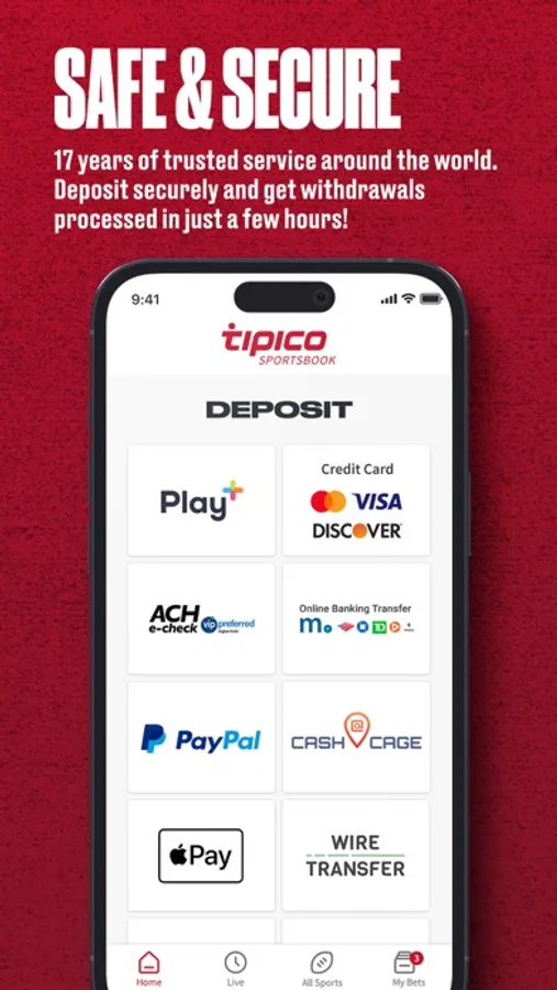 You can easily make your first Tipico Sports betting app deposit with a variety of options, including PayPal, and even cash out quickly on your next bet on the Super Bowl and NFL playoffs. Bet on all your favorite sports, including: