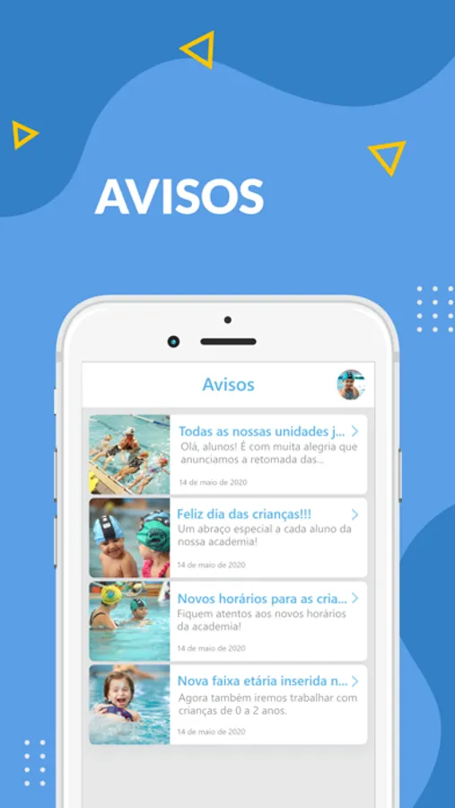 Através dele iremos mensalmente disponibilizar recados, avisos, novidades, mensagens e comunicados. Outra vantagem é que, com o App nossos alunos poderão visualizar com propriedade os conceitos que trabalhamos em nossa Metodologia Natação Máxima.