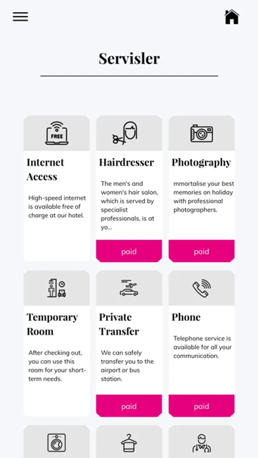 Uygulama, henüz otele gelmeden kişisel bilgilerin Pre Check-in bölümüne girilerek giriş işlemlerinin hızlandırılmasını sağlıyor. Odanız hakkında detaylı bilgi sahibi olabilirsiniz ve otelde bulunduğunuz süre içerisinde a la carte restoran cabana rezervasyonlarını yapabilirsiniz. Tüm istek ve ihtiyaçlarınızı anında bizlere iletebilir, ayrıca aldığınız tüm hizmetlerle ilgili yorumlarınızı yazarak ve anket olarak uygulama üzerinden iletebilirsiniz.