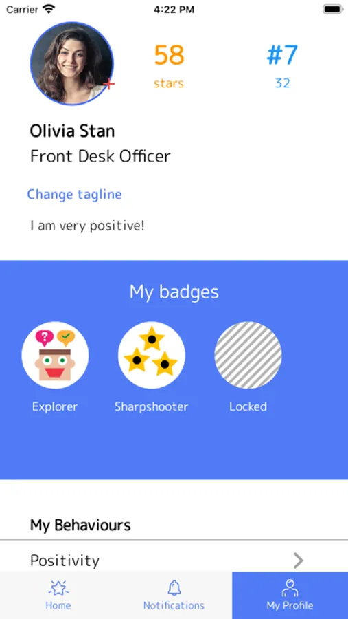 Fostering good workplace behaviors through a corporate social media app. People are praised and encouraged to perpetuate good business behavior and ethics through real time input from colleagues – which are stars and comments.