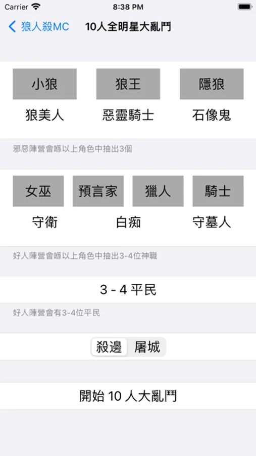 殺邊:神職 或 平民 任意一方陣營全部出局