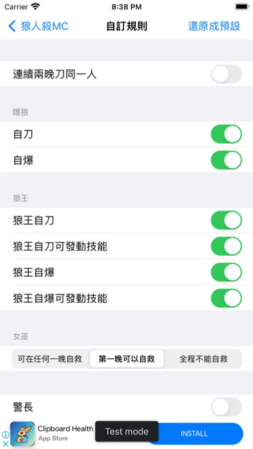 *可設定為全程可以自救/只有第一晚可以/全程不能自救