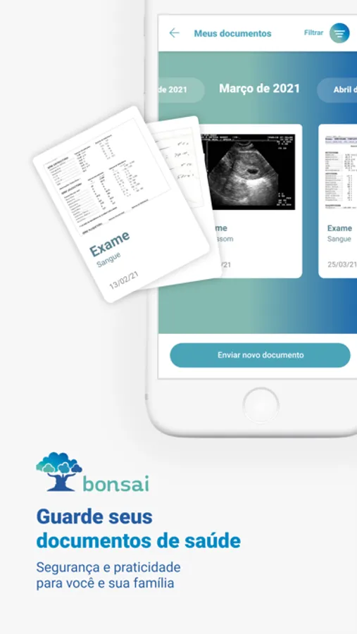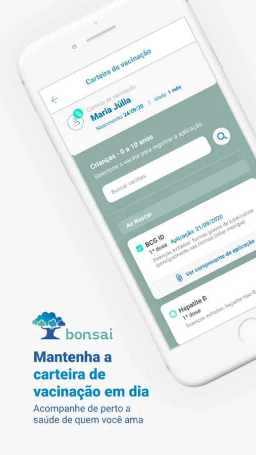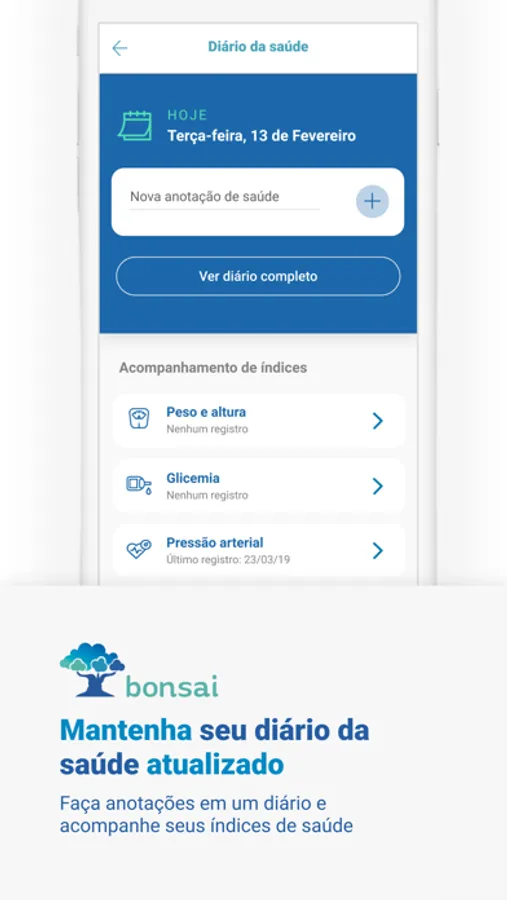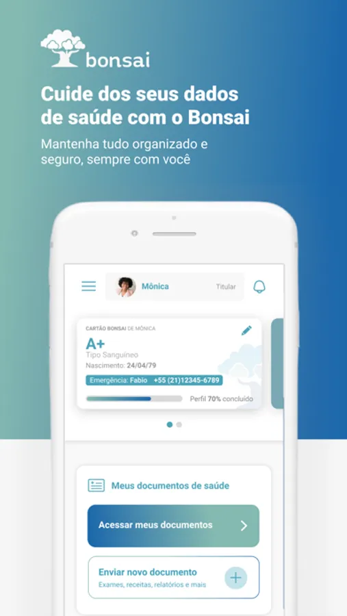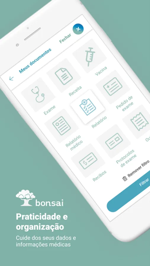 No seu Bonsai poderão ser guardados exames, consultas, imagens, registros de medicamentos receitados e seus efeitos, vacinas, enfim um diário completo de sua saúde na palma da sua mão. Imagine a importância destas informações no futuro!