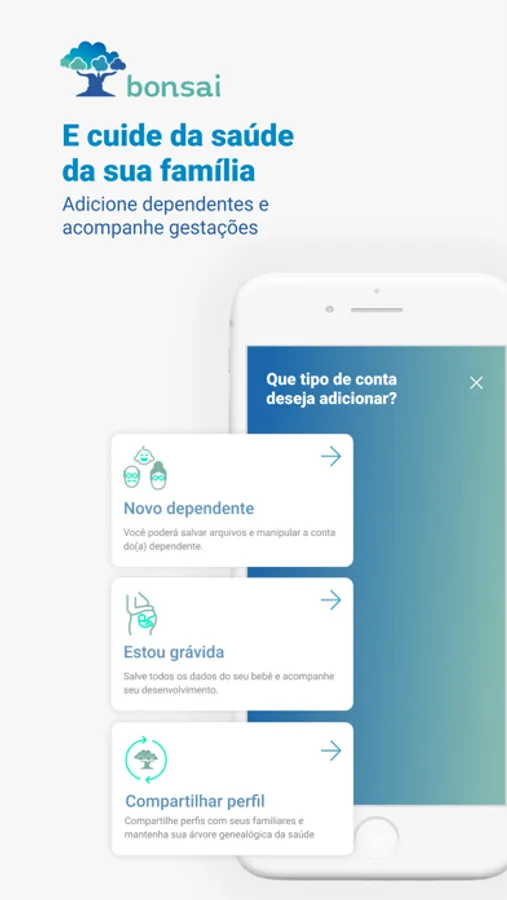 O Bonsai é um aplicativo de relação médico e paciente, feito para a família, e assim como na cultura japonesa, é uma árvore que passará de geração em geração. Um ponto de encontro entre a vida e a saúde, entre o médico e o paciente, entre a informação do diagnóstico e a cura.