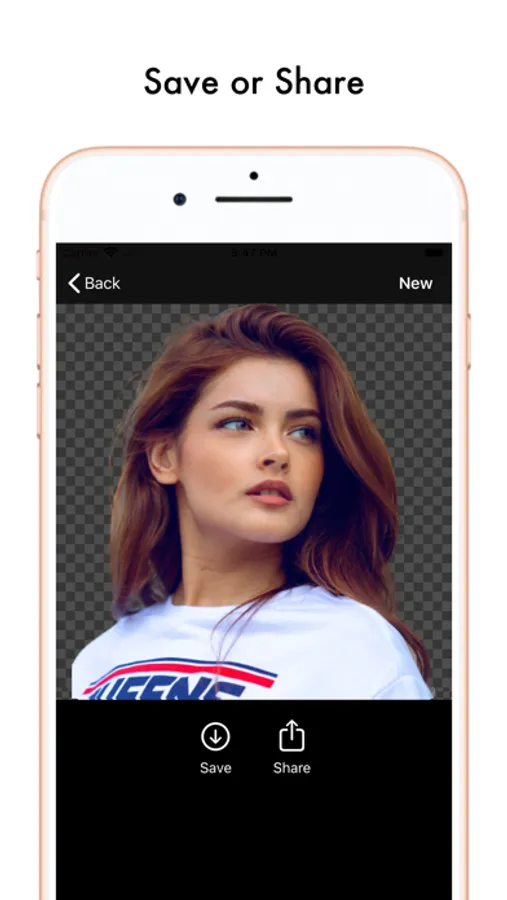 After removing the background, you can save your edition in PNG or share to your favorite app.