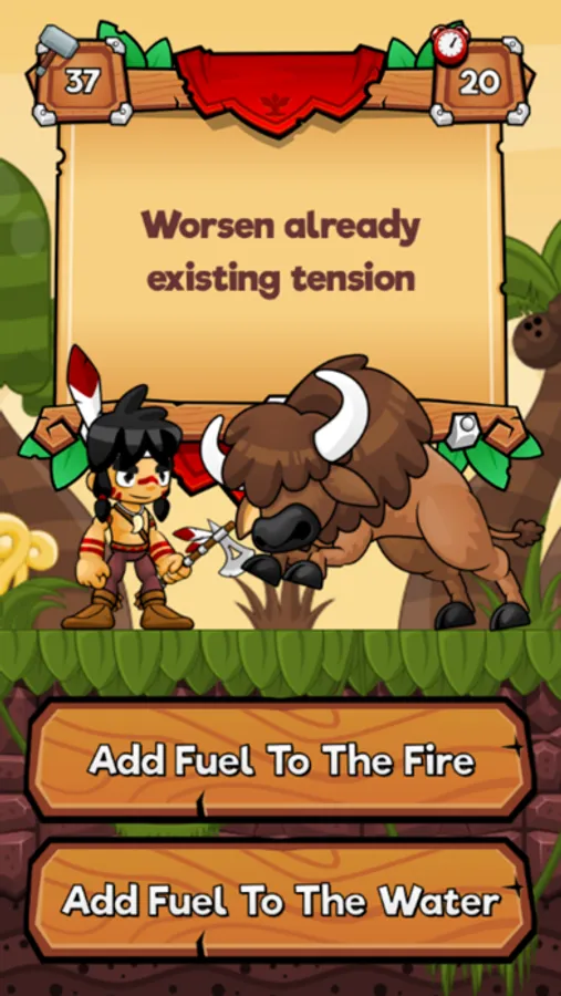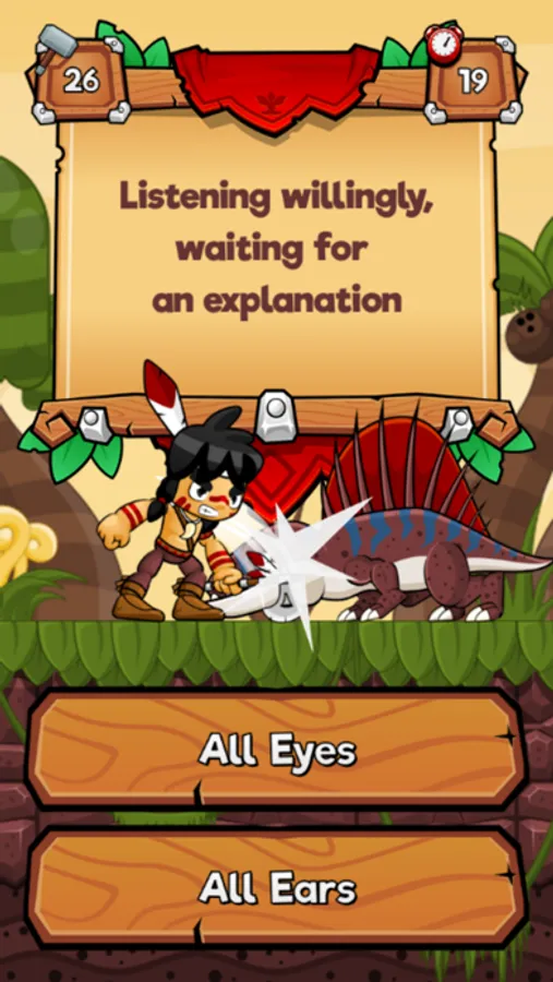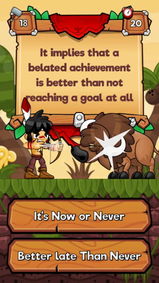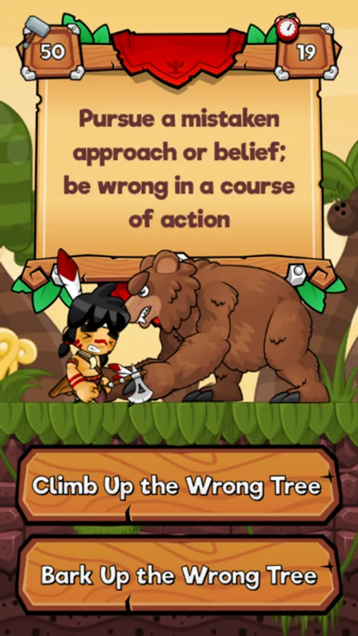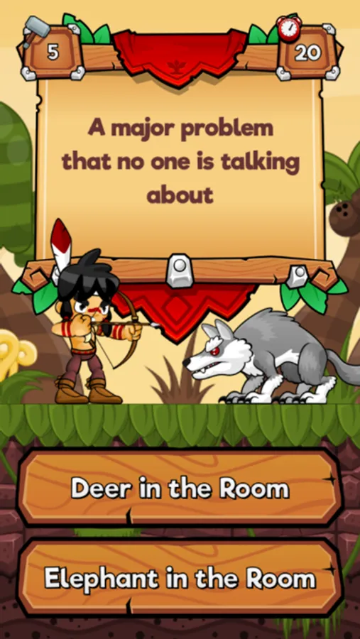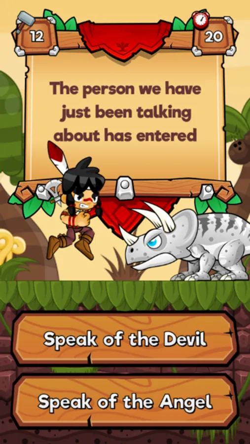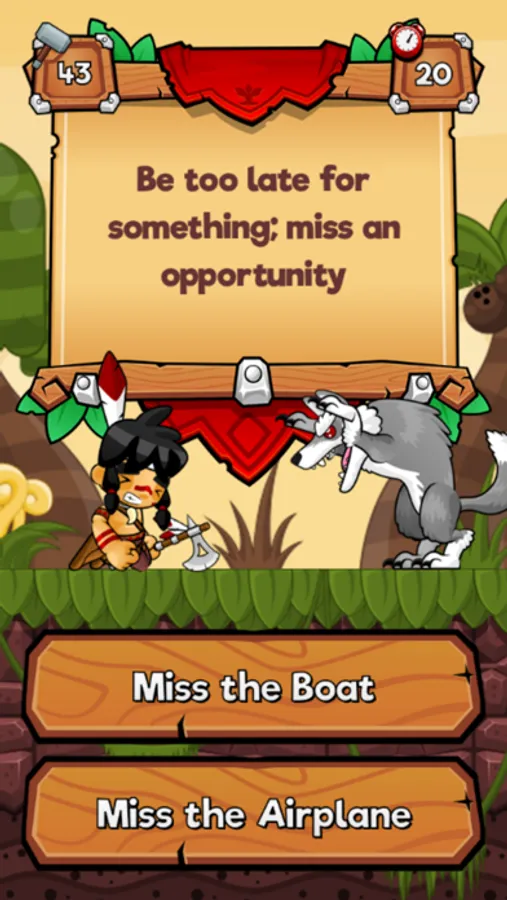 Help the Native Boy beat wild animals and dinosaurs in 20 seconds by answering English idioms correctly.