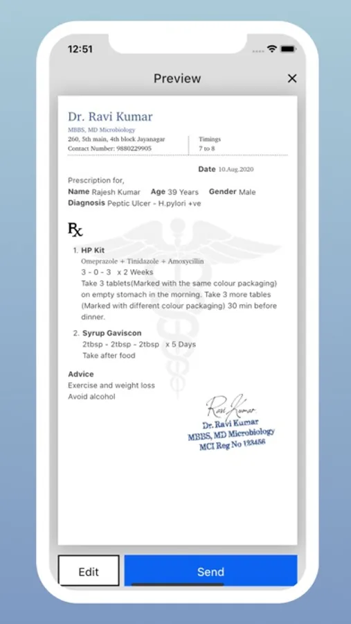 6. Send the prescription via a link to the patient over WhatsApp, SMS, or Email.