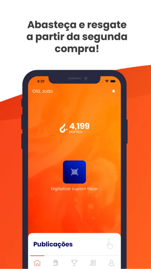 3 - Pontue escaneando o cupom fiscal da abastecida, normalmente a cada R$1,00 em compras você ganha 1 ponto;