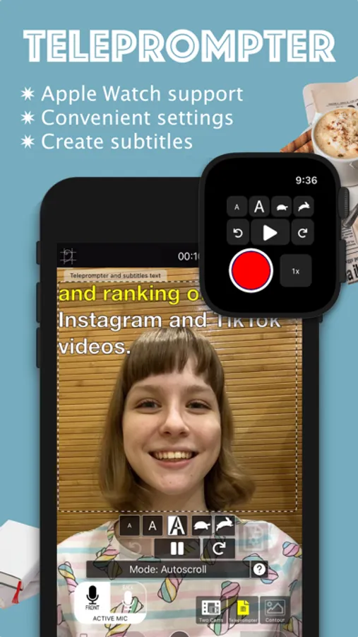 Subtitles for video + teleprompter + special camera with cool features (including recording with two cameras at the same time), in one application! Sounds incredible? Yes! But we did it and created a powerful and user-friendly tool that includes a lot of cool stuff for creating video content!