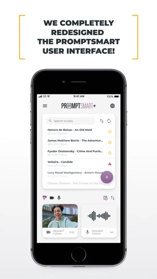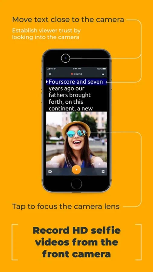 PromptSmart+ is cloud-enabled (optional) and you can also record HD videos inside the app while presenting. Use Selfie Mode to position the text next to or beneath the front-facing camera so you don't look like you're reading.