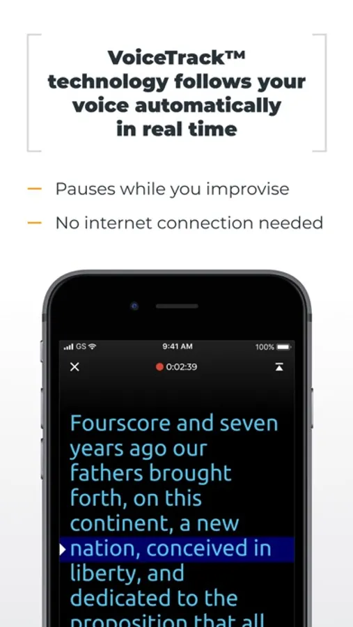 [+] VoiceTrack—Speech-recognition based scrolling. If you go off-script, VoiceTrack knows and will hold your place, waiting for you to return.