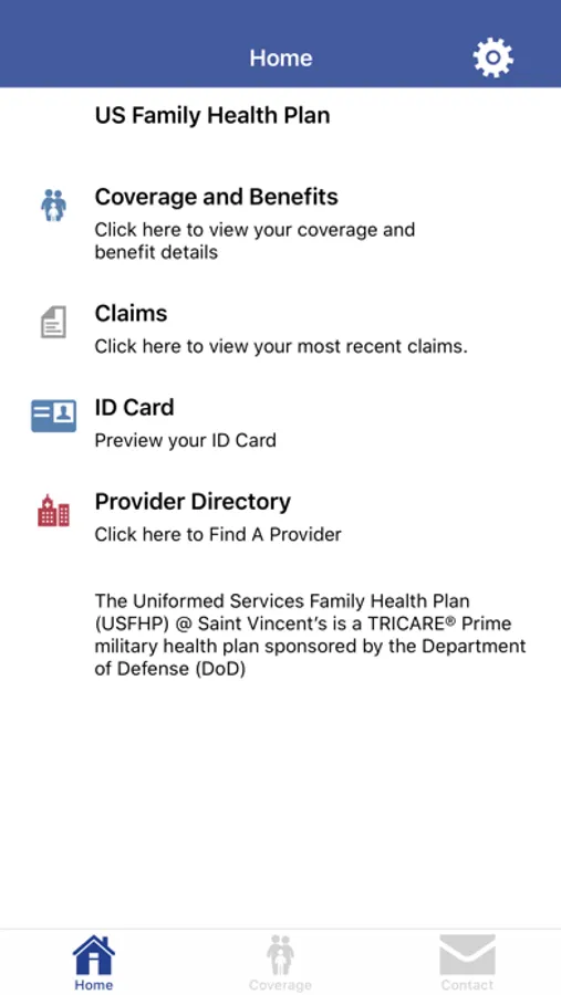 ABOUT USFHP - The Uniformed Services Family Health Plan (USFHP) @ Saint Vincent’s is a TRICARE Prime military health plan sponsored by the Department of Defense (DoD). We’ve been providing comprehensive care for military families and for over 30 years. We provide the full TRICARE Prime benefit including routine doctor visits, specialty care, hospitalization, urgent and emergent care, preventative health care services and prescription coverage—plus enhanced benefits such as $0 to low cost eyeglasses, preventive dental services or gym membership reimbursement…the choice is yours. In addition, USFHP members have access to some of the best hospitals and physicians in the nation.