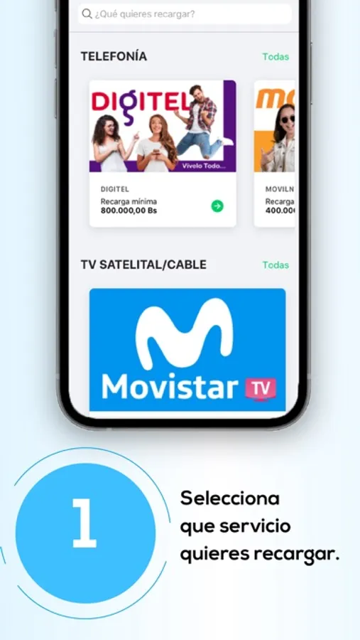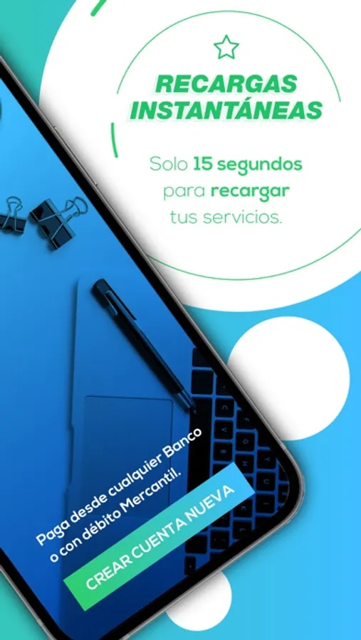 Recarga tu vida en 15 segundos. Recarga saldo en SimpleTV, Inter, Movistar, Movilnet, Digitel y CANTV paga desde cualquier Banco o con débito Mercantil.