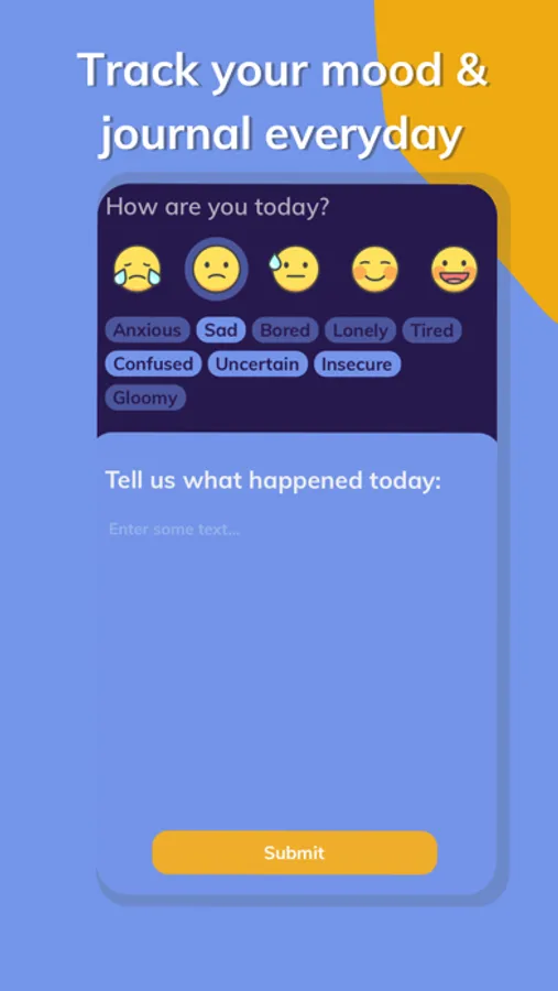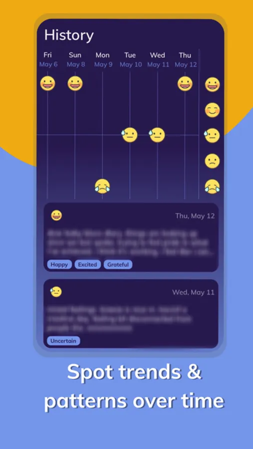 Baby Blues is a free-to-use app that gives you the chance to track your mood and journal daily. You can check out your mood history tab to keep track of trends and patterns in your mood, allowing you to stay in control of your mental health. Don’t worry about notifications - we’ll send you a reminder once a day and you can choose when you’d like to be notified.