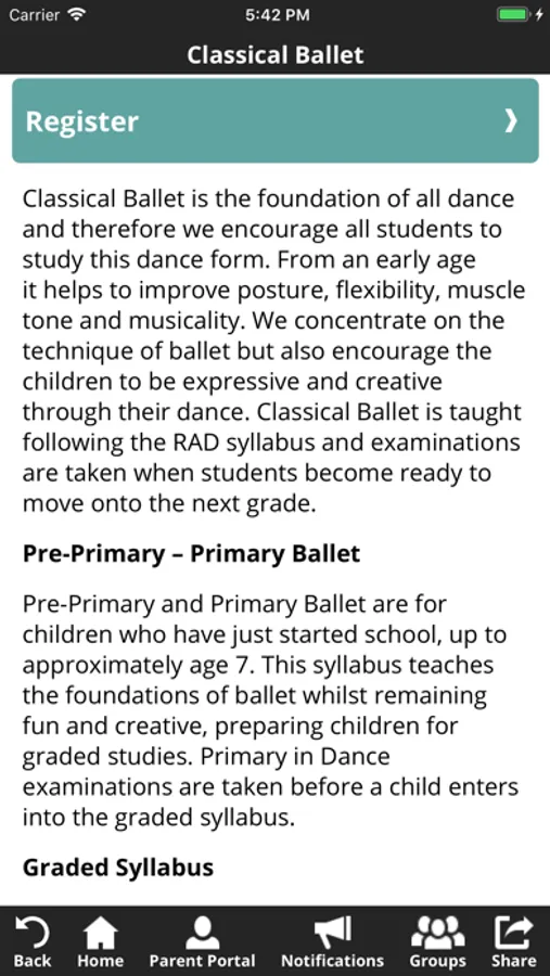 - Quick and easy access to register for all extra activities, including Summer Intensives and workshops.