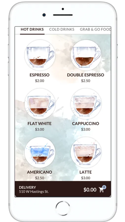 - Choose from coffee, tea, specialty drinks, snacks and food from our elevated menu.