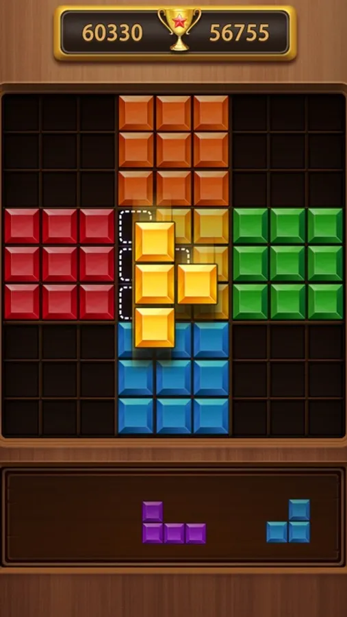 Place blocks in the 9 x 9 wooden jigsaw. You need fill the block in the grid. When you fill a line or a square, you can clear them. The most important is to get higher scores to break your record!