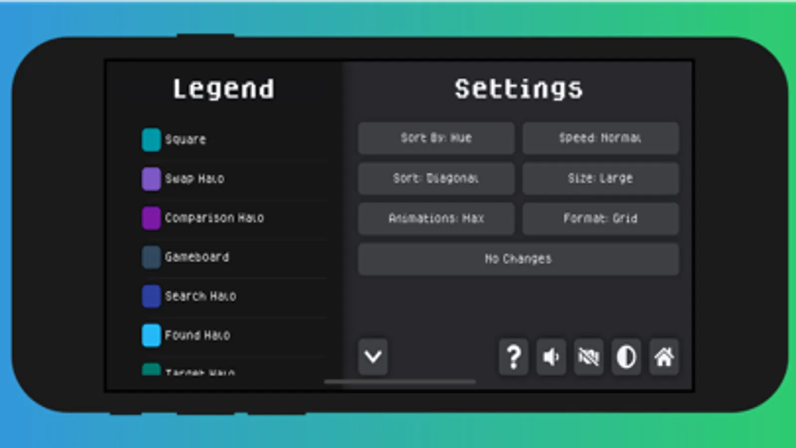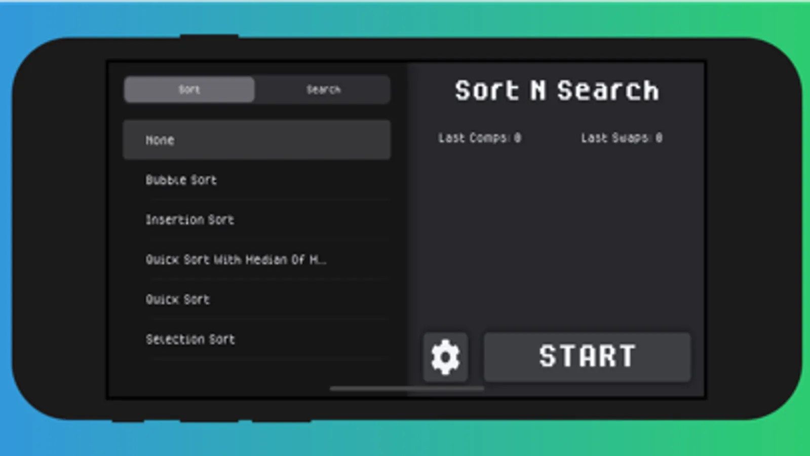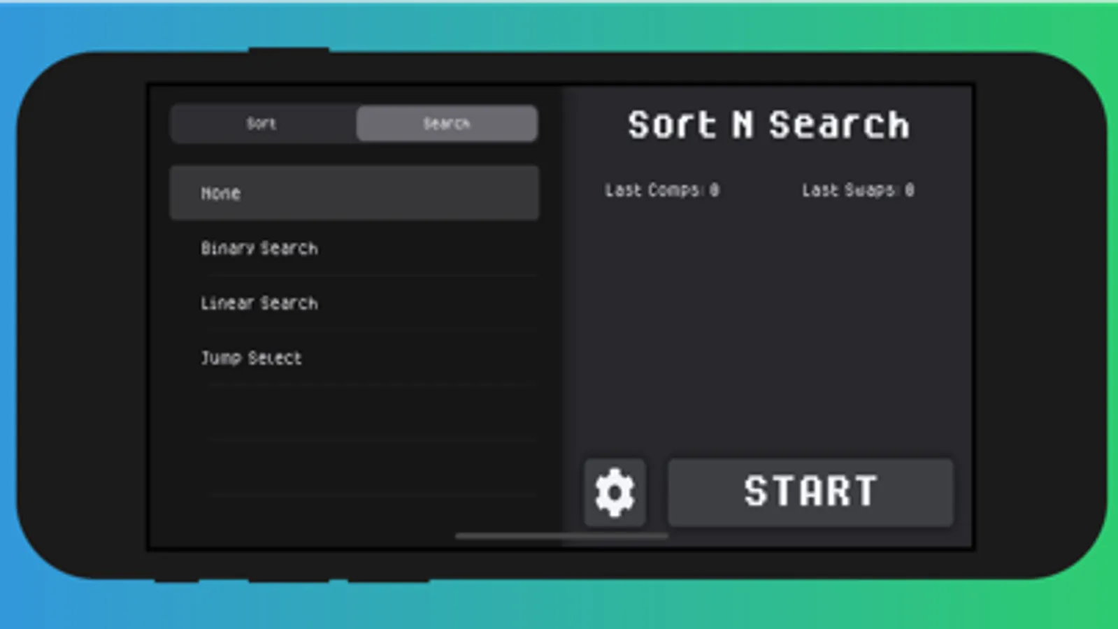 Currently, the app features 4 Sorting Algorithms, 1 Partitioning Algorithm, 3 Search Algorithms, 8 board randomization styles + in-game board changing. You also get simulation speed control & fully customizable gameboard size & colors. Along with the ability to customize the gameboard square colors in real-time. All this and more with Sort N Search.