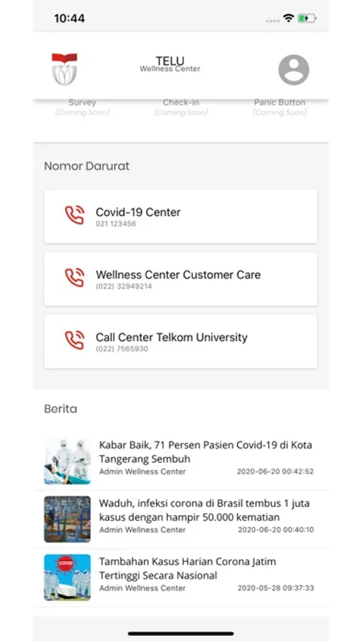 Tel-U Wellness Center mobile is an application type of service developed by the Tel-U Wellness Center work unit team, which is related to information, promotion, prevention, empowerment, and protection of physical and mental health (wellness) within Telkom University. Through information services, the application provides emergency numbers that can be accessed by students, lecturers, and staff, such as health service numbers, dormitories, security, to faculty-student numbers. This service is equipped with prevention and mitigation functions through the panic button (SOS) feature connected to the emergency number. To minimize problems and increase the speed of solutions to disturbances in the campus environment, this application is also a medium for students, lecturers, and staff to report problems through distraction-report complaints, information directly connected to the units, directorates, and faculties concerned for immediate action. By relying on the participation of the Telkom University academic community to share issues and complaints around academia, social and the environment, physical and mental health can grow in supporting the vision and mission of Telkom University.