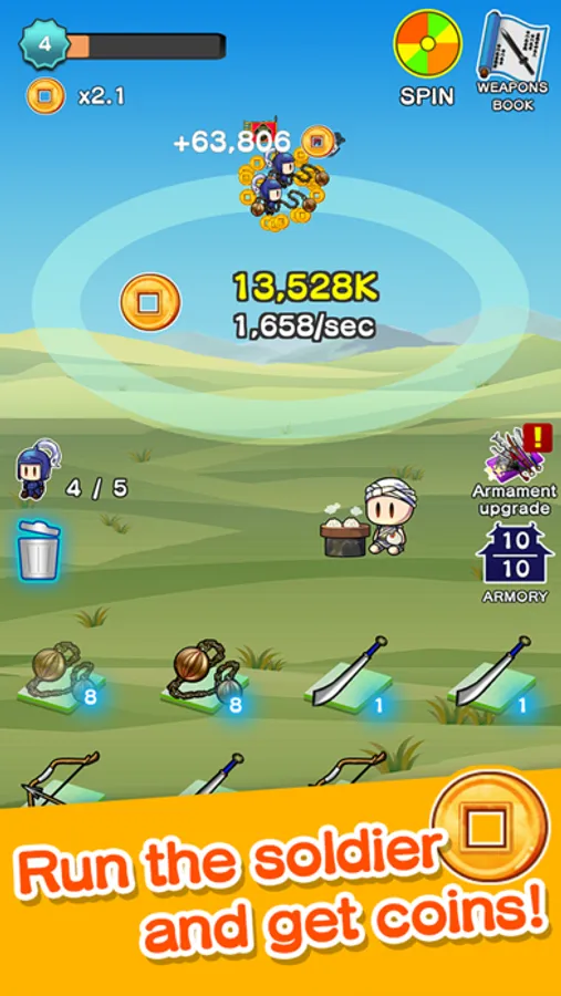 Strengthen your troops with the collected military funds!