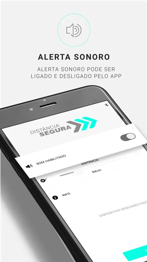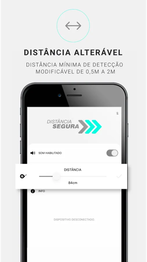 O aplicativo que o acompanha, permite alterar a distância mínima do disparo da sinalização entre 0,5m a 2m além de permitir ligar e desligar a sinalização sonora.