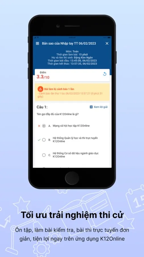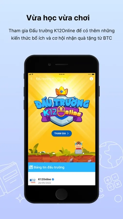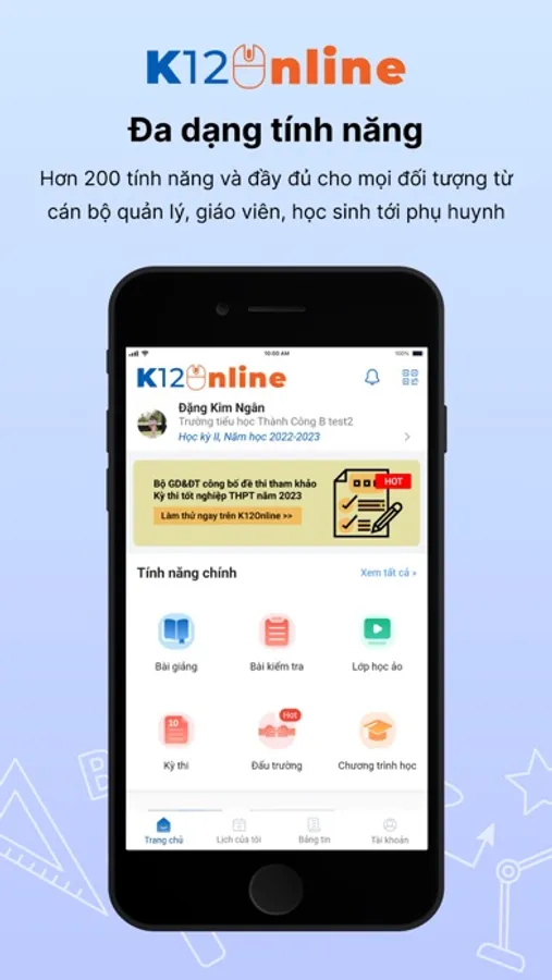 Học sinh có thể tự học, làm bài tập, làm bài kiểm tra, tham gia các lớp học trực tuyến, thảo luận trực tuyến... và khám phá nhiều tiện ích khác ngay trên ứng dụng K12Online.