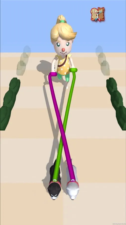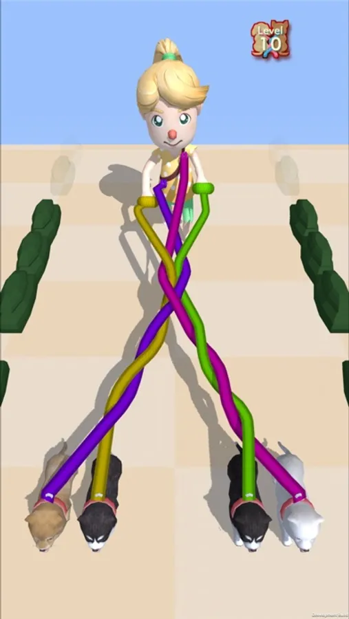 It is a brain training puzzle game in which you can move a dog's lead that is entangled while walking a dog and untie it.