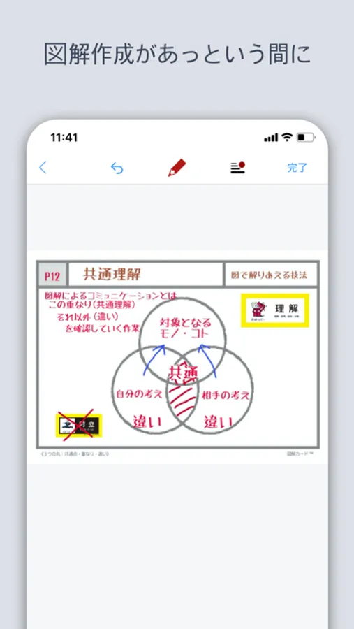 自分や相手の頭の中をスッキリ見える化できる図解アプリ。文章では複雑になることも図解なら一目瞭然。たとえ言葉が通じなくても、図でわかり合える。それが「図解」の力。慣れていない方でも簡単。相手に頭の中を伝えることができる理解&思考&コミュニケーション支援ツールです。