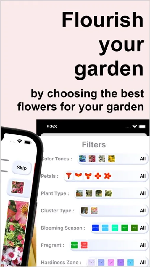 Also, flower search and list helps you to see all flowers at once, compare and learn about them.