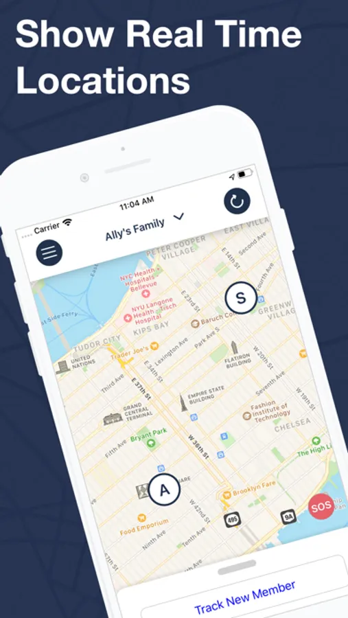 Each member would appear on a map with unique icon after registration so that you can always know the real-time of your family and find friends.