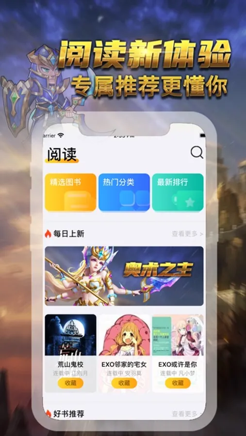 【推荐页】以全屏划页的形式展现优选小说,给您不一样的交互体验。