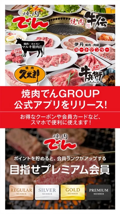 焼肉でんGROUPの公式アプリをリリースしました。