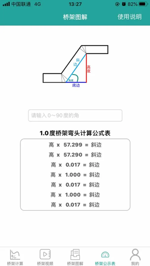 桥架弯头计算器:功能全面使用简单,支持无网络离线使用,功能包括,桥架弯头的做法图解,桥架弯头计算口诀,桥架画法切法介绍,桥架勾股定理计算,桥架下料尺寸的计算,桥架弯头角度计算,桥架爬坡计算,桥架水平弯头计算及多层桥架的计算。本公司致力于在苹果公司的许可范围内服务大众,承担一切有关法律责任,和苹果公司无关。而且遵循苹果公司限制广告跟踪的规定。请在需要的时候开启定位功能方便招工模块的使用,长时间定位有可能损耗电池balabala的。
