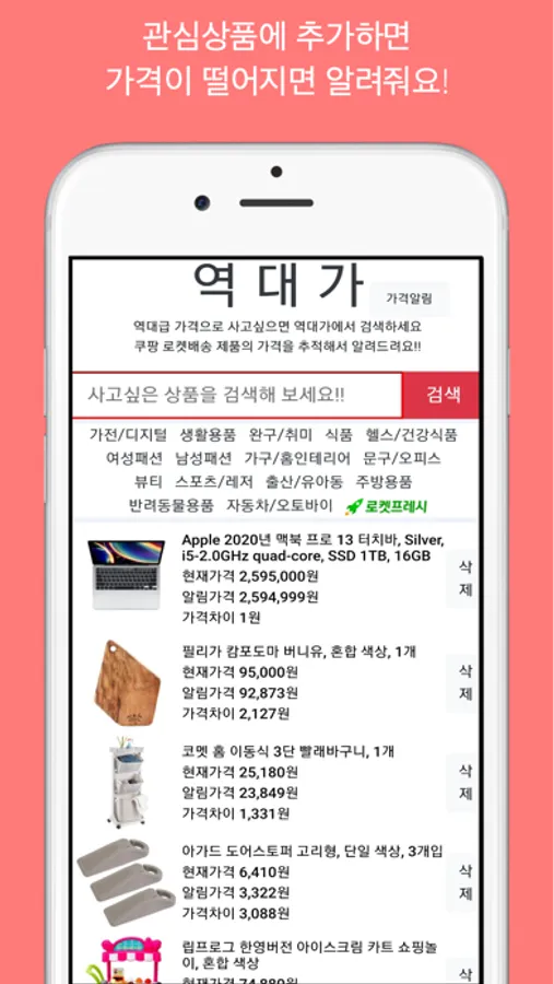 쿠팡 로켓배송 제품들의 가격 변동을 한 눈에 확인하세요!