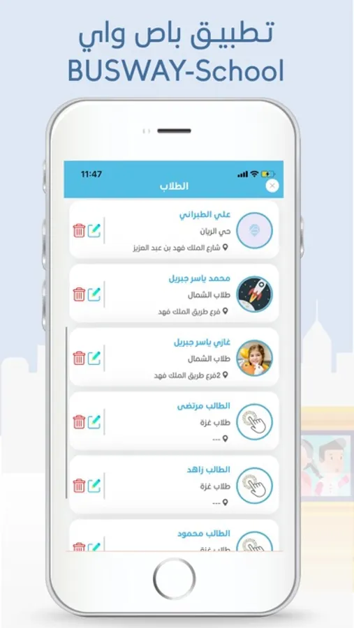 - متابعة دقيقة لجميع حركة الباصات المدرسية على الخريطة.