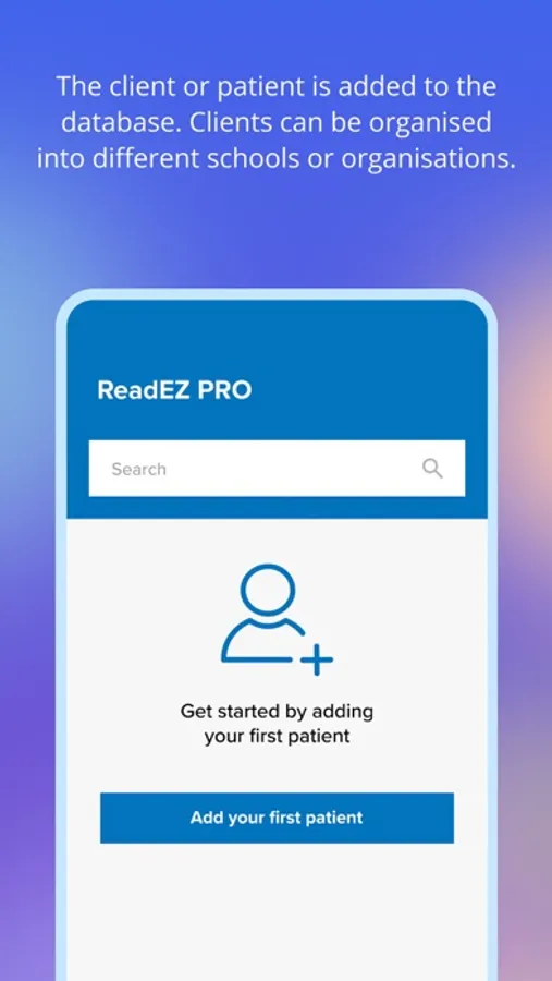 The client or patient is added to the database. Clients can be organised into different schools or organisations.