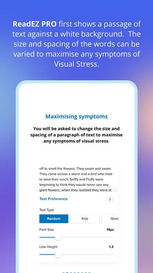 ReadEZ PRO first shows a passage of text against a white background. The size and spacing of the words can be varied to maximise any symptoms of Visual Stress.