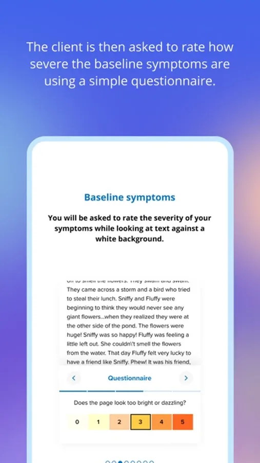 The client is then asked to rate how severe the baseline symptoms are using a simple questionnaire.