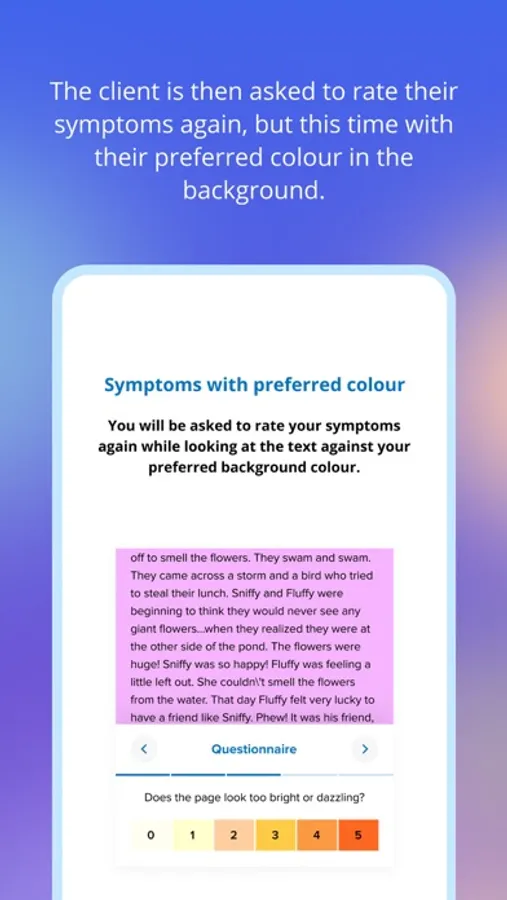 The client is then asked to rate their symptoms again, but this time with their preferred colour in the background.