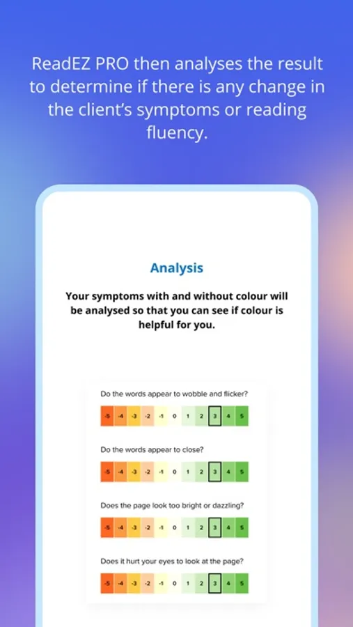 ReadEZ PRO then analyses the result to determine if there is any change in the client’s symptoms or reading fluency.