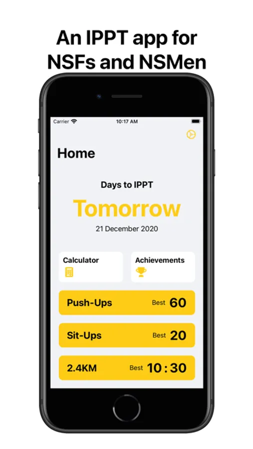 Go For Gold is an Individual Physical Proficiency Test (IPPT) app that helps you to calculate your score and stay motivated to train for IPPT!