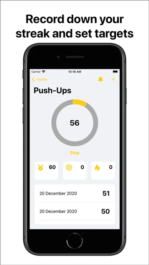 The in-built timer helps you to do your push-ups & sit-ups on the spot and record them. The best count will be displayed and in addition, you can also set your target for yourself to beat.
