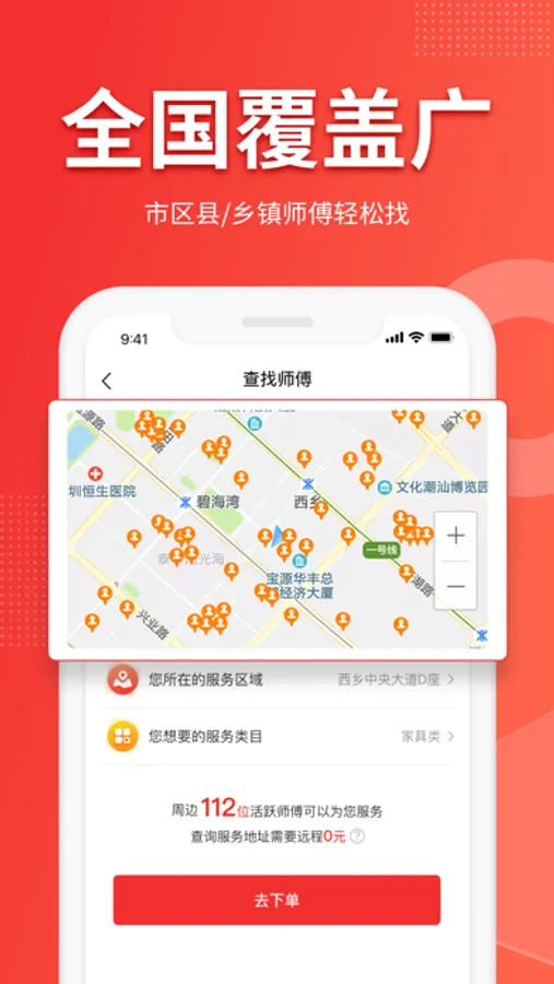 2.服务覆盖广:200万+师傅遍布全国600个城市3000个区县,涵盖偏远地区