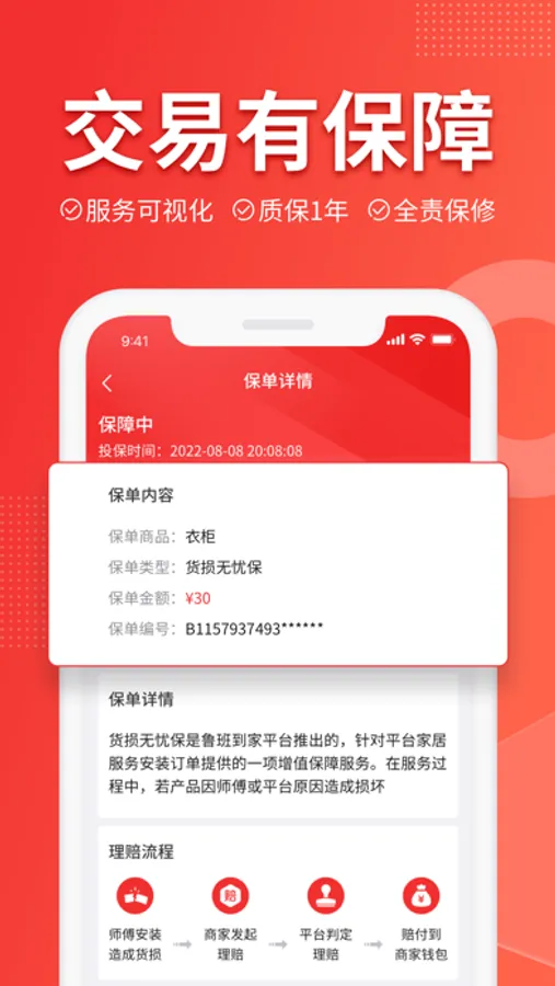 5.交易有保障:订单安全平台担保,专业保险全程保障,服务纠纷先行赔付,差评免单