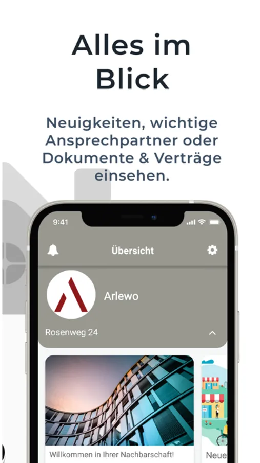 Digital persönlich: Mit der Arlewo-App erhalten alle Mieter und Eigentümer Zugriff auf das Onlineportal. Verschiedene Services und Informationen rund um Ihr Objekt sind stets griffbereit.