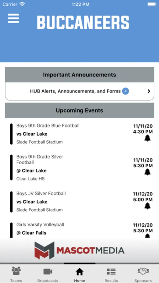- Active Home Screen Dashboard: Upcoming Games and Recent News.