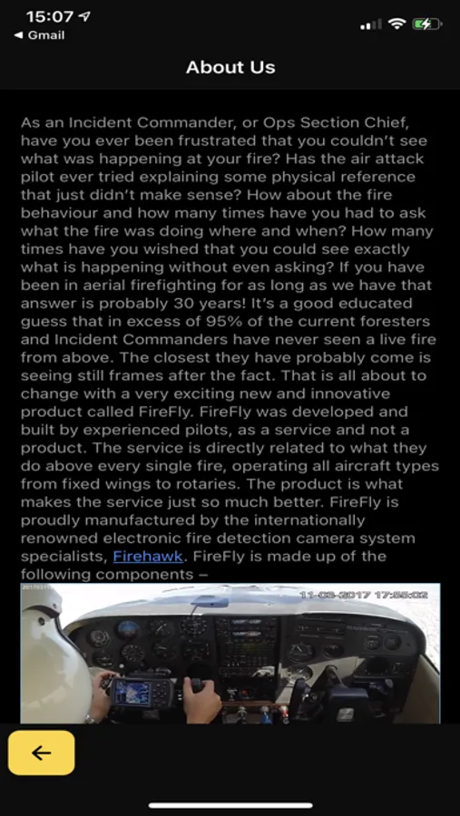 As an Incident Commander, or Ops Section Chief, have you ever been frustrated that you couldn’t see what was happening at your fire? Has the air attack pilot ever tried explaining some physical reference that just didn’t make sense? How about the fire behaviour and how many times have you had to ask what the fire was doing where and when? How many times have you wished that you could see exactly what is happening without even asking? If you have been in aerial firefighting for as long as we have that answer is probably 30 years! It’s a good educated guess that in excess of 95% of the current foresters and Incident Commanders have never seen a live fire from above. The closest they have probably come is seeing still frames after the fact. That is all about to change with a very exciting new and innovative product called FireFly. FireFly was developed and built by experienced pilots, as a service and not a product. The service is directly related to what they do above every single fire, operating all aircraft types from fixed wings to rotaries. The product is what makes the service just so much better. FireFly is proudly manufactured by the internationally renowned electronic fire detection camera system specialists, Firehawk.